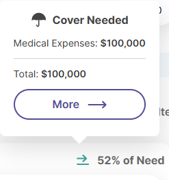 - Clicking the bar brings up a summary of the calculated insurance need: