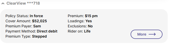 - The purpose of the policy, e.g. Personal or Key Person, etc.
