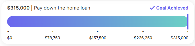 - Current net value of all accounts linked to the goal are shown in the top left.